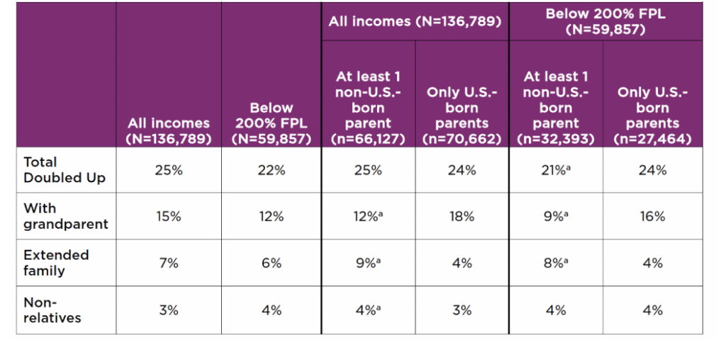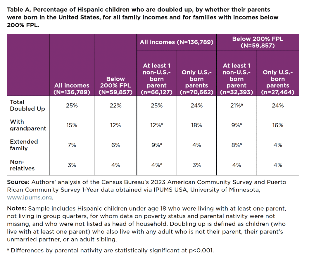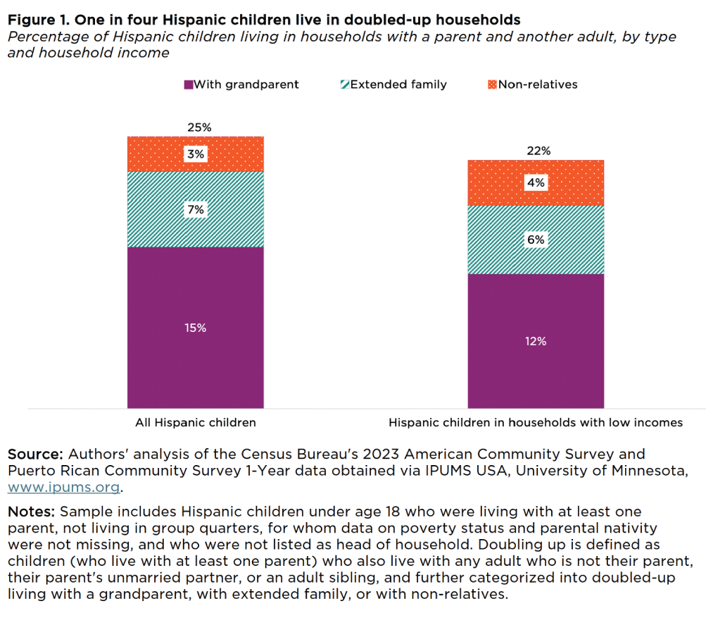 Wildsmith, E., Alvira-Hammond, M. (2025). One in four Hispanic children live in doubled-up households. National Research Center on Hispanic Children & Families. DOI: https://doi.org/10.56417/9540p5652t