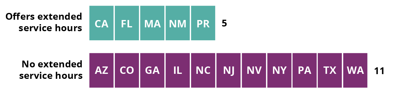 States categorized by whether they offer evening and/or weekend service hours
