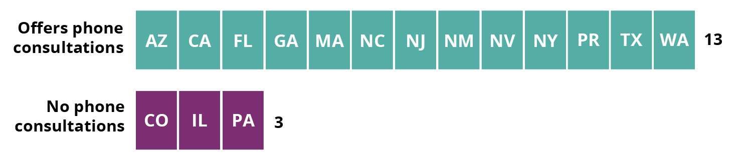 States categorized by whether they offer phone consultations