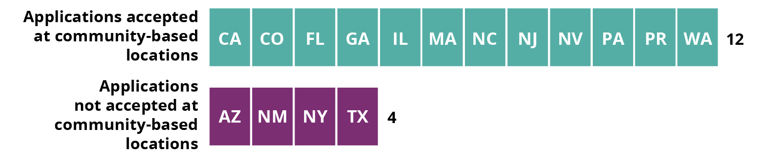 States categorized by whether they accept applications at community-based locations