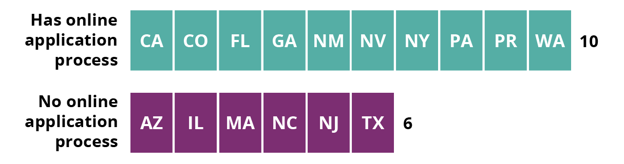 States by whether they have an online application process