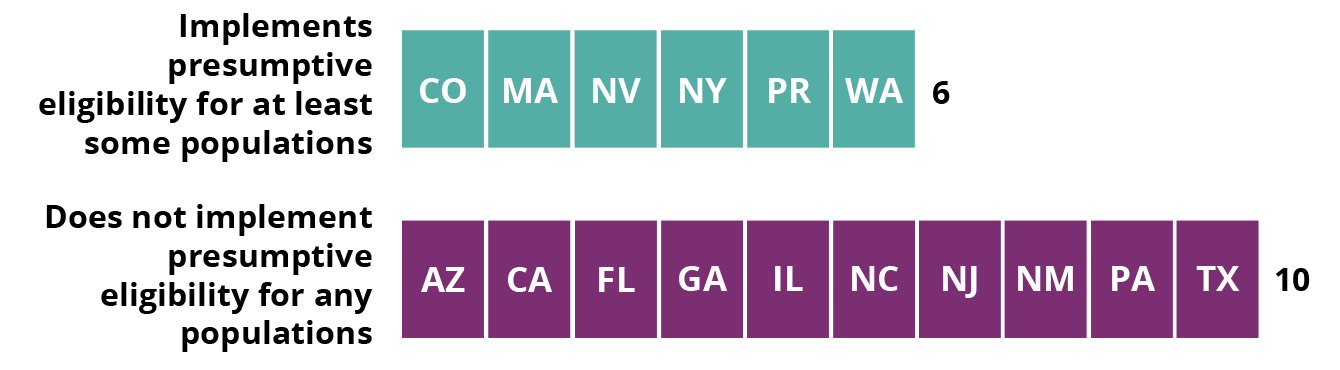 Figure 6. Fewer than half of Hispanic-populous states implement presumptive eligibility.